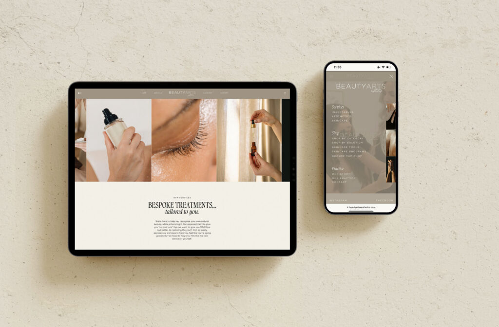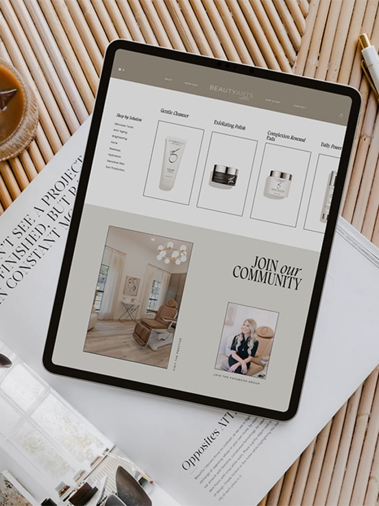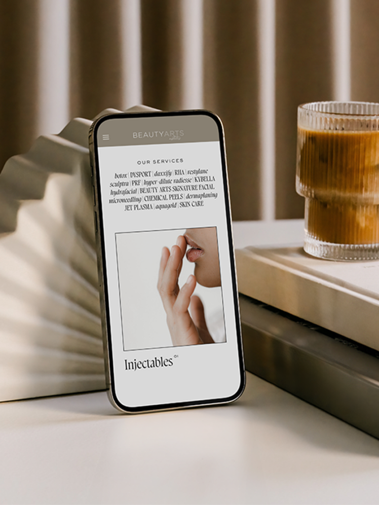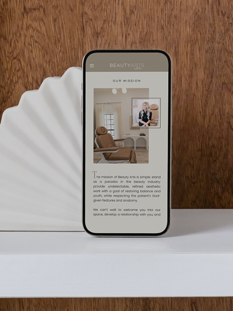 We wanted the digital home for Beauty Arts Aesthetic to be a full experience for Bethany’s patients and customers to enjoy booking services and stocking up on skincare online in between appointments. We took a lot of inspiration from the interior design of the practice, the warm tones, clean environment, and elegant neutrals, and we wanted the website to be a perfect compliment. After extensive searching and curation, we compiled a library of images to sprinkle throughout the site and help them stand out from the growing competition in the Dallas Fort Worth area. The office is absolutely stunning and we were excited by the design challenge to try to match that level of refined excellence in the digital space.