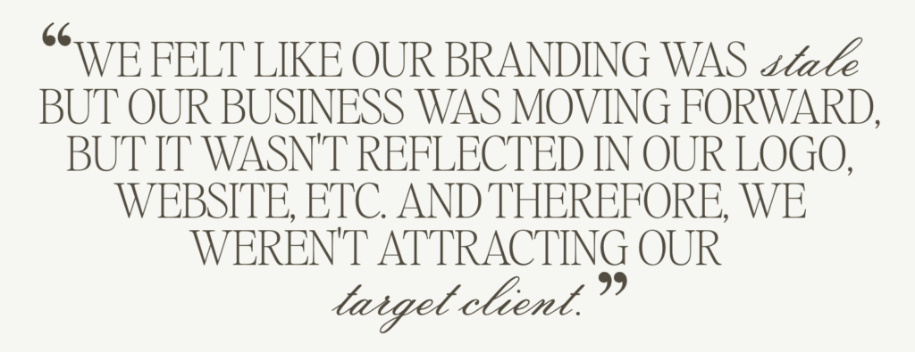 “FROM THE BRANDING DECK TO THE FIRST LOOK AT THE WEBSITE, it felt exciting TO SEE THE manifestation of our direction IN YOUR HANDS (AND EYES!!)”