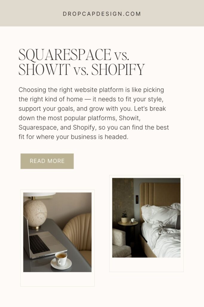 Squarespace vs. Showit vs. Shopify – Each platform offers something unique. And choosing the right one can mean the difference between a site that works for you—and one that feels like a never-ending tech headache.