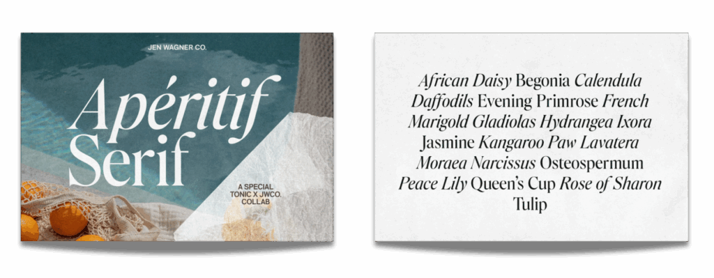 After scrolling through messages from clients wanting to switch over to Martini immediately, I myself was quickly captivated by a new font I’d never seen before. I employed my tools and search engines to research and try to find this sexy new font, only to discover that it was specifically made for this template collection in a Jen Wagner x TONIC collaboration.